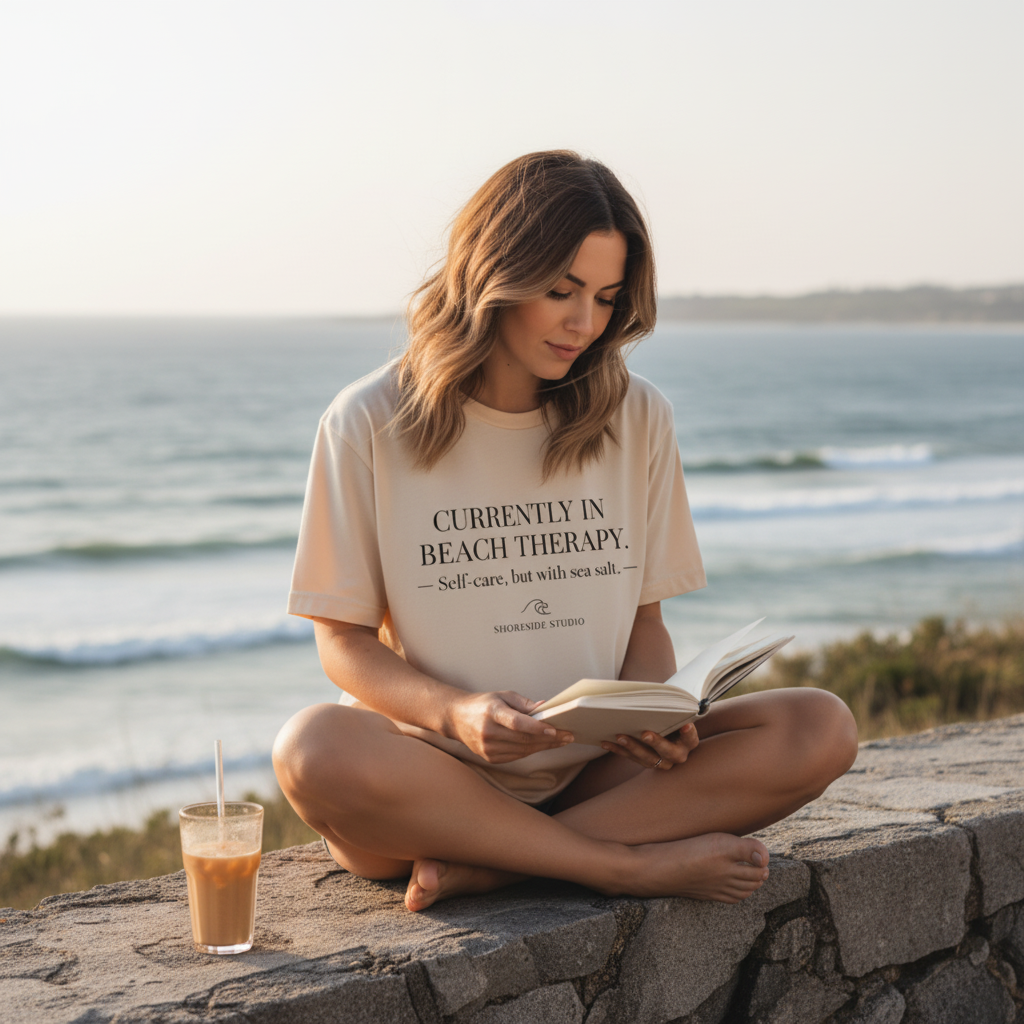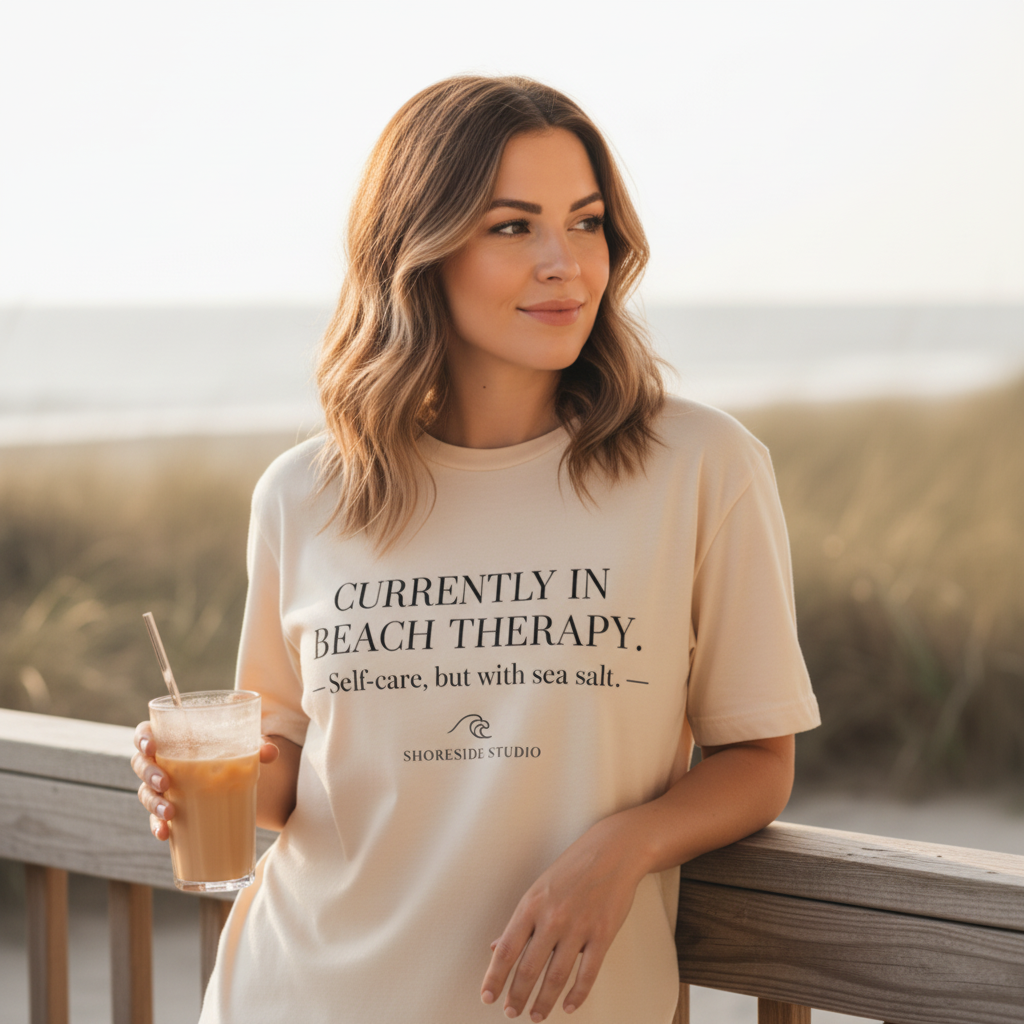/ Currently in Beach Therapy Shirt | Coastal Aesthetic Tee | Beach Lover Gift | Self Care Shirt | Shoreside Studio Minimalist Beach Top
